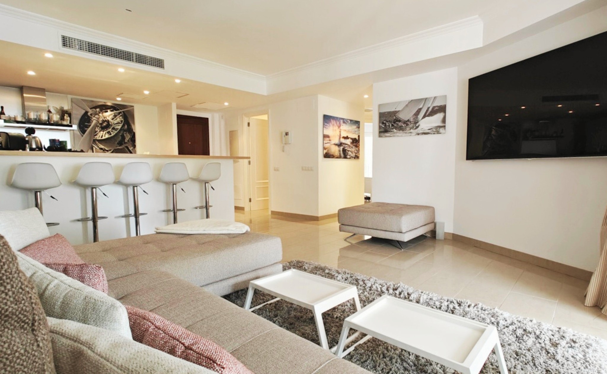 Santa Ponsa, as very popular holiday location with beautiful sandy beach, boasts of all necessary amenities like shops, bars, restaurants, supermarkets, etc., not to forget the marina Club Nautico Santa Ponsa. Next to Santa Ponsa you find the new Santa Ponsa area (Nova Santa Ponsa). Embedded in the Santa Ponsa golf courses I, II & III you find a selection of high-class golf residences as well as beautiful luxury villas and residences in first sea line. Numerous sport and leisure activities are given not only through the marina Port Adriano with its adjacent sandy beach. To the Palma city center, you get within just an approximately 25 min car drive and to the international airport you need just approximately 35 min. by car.
