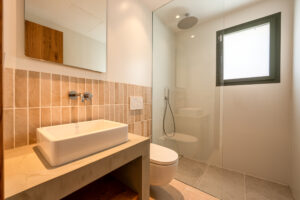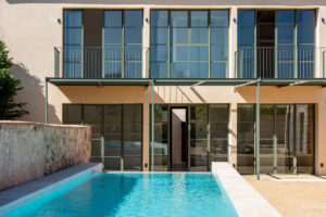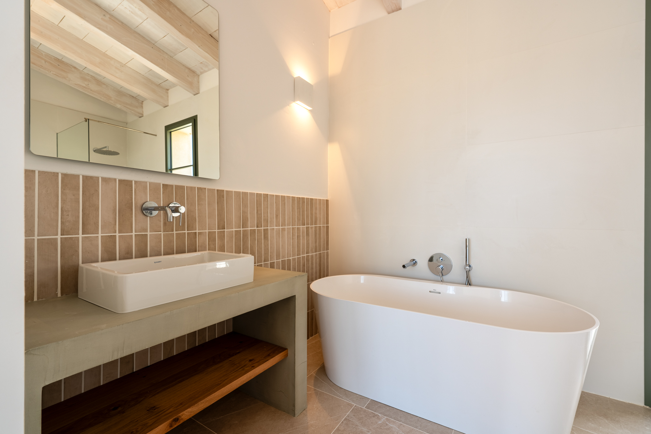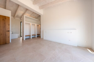 A beautiful garden offers several relaxation areas, a pergola, and various fruit trees. The ten-meter-long infinity pool has a decorative fountain. There is also the possibility of building a 25 m² guest house or studio with bathroom and pergola. The spacious garden with pool and spectacular views of the Tramuntana mountains make this house something very special. The property was completely rebuilt from a small stone house – with great attention to traditional architecture and modern comforts.