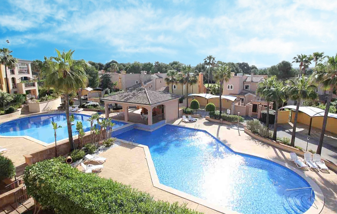 The popular residence SES PENYES ROTGES RESIDENCIAL en Nova Santa Ponsa has been built in 2002 and offers 3 Mediterranean style buildings with in total 23 apartments and penthouses. 10 detached villas – all in first line to the golf courses and with own pool – belong to the community as well.