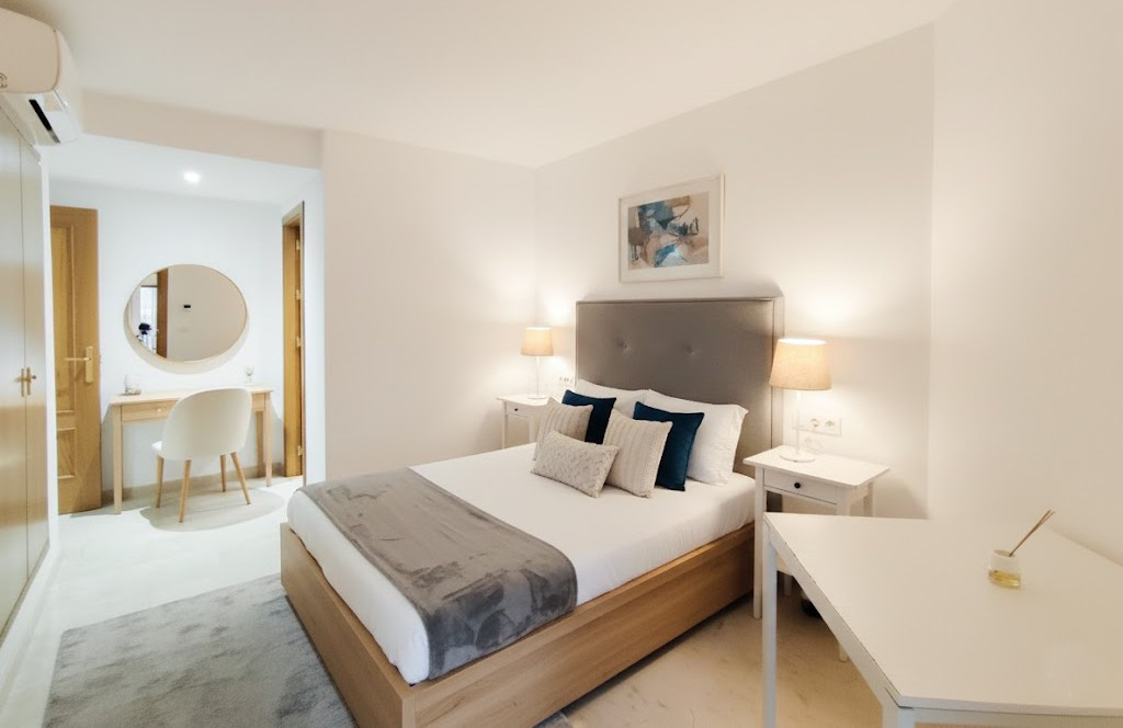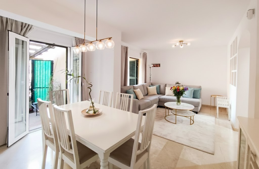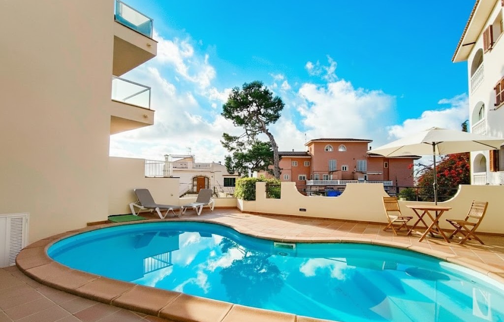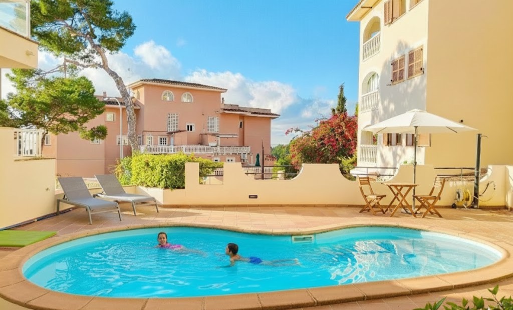 This magnificent apartment in Palma’s La Bonanova district, near the Porto Pi shopping center, has a living area of approximately 100 m2 and offers a spacious living/dining room with access to the terrace, a fully equipped kitchen, a master bedroom with en suite bathroom, another double bedroom, and a separate shower room. The residence is very well maintained and offers a quiet environment and a communal pool.