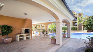 Suelos de terracota, aire acondicionado f/c, chimenea, armarios empotrados, cocina totalmente equipada, piscina propia, jardín, ventanas de aluminio de doble cristal, coladuria, piscina comunitaria, 2 x plaza de parking.