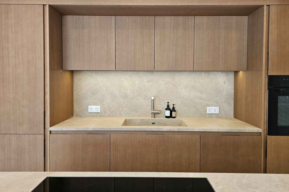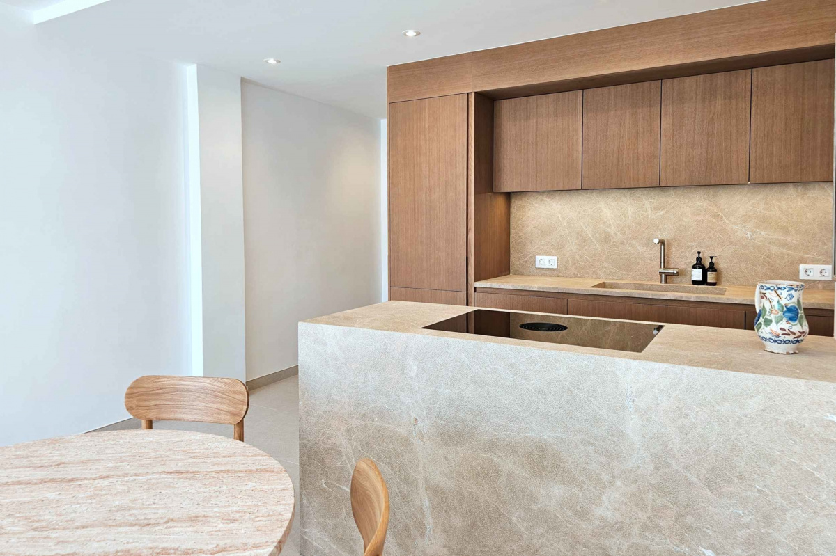 Cocina totalmente equipada de alta calidad con electrodomésticos empotrados Miele, lavadero, ascensor, plaza de aparcamiento privada (cubierta), aire acondicionado frío/calor, armarios empotrados, despacho, ventanas de doble acristalamiento, suelo de baldosas.