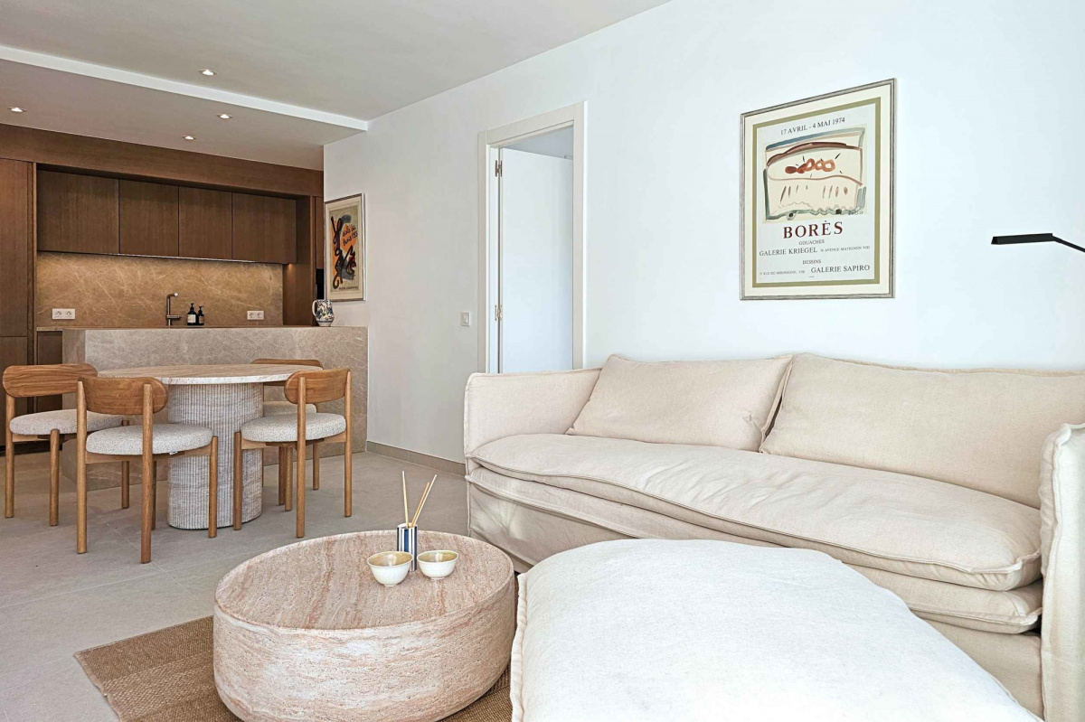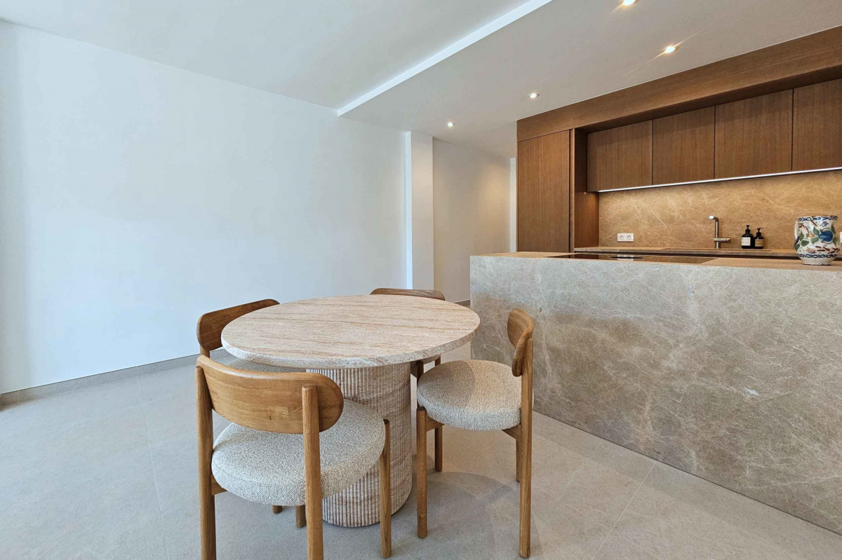 Este maravilloso piso completamente renovado, situado en un edificio residencial de solo 7 viviendas, se encuentra en Puerto Andratx, en el suroeste de Mallorca. Con una superficie de 102 m² (90 m² habitables), el apartamento cuenta con un luminoso salón-comedor, una cocina abierta y totalmente equipada, un lavadero, un dormitorio principal con baño en suite, dos dormitorios más, un baño de invitados independiente y otra habitación que se utiliza como despacho. El apartamento ha sido renovado y rediseñado utilizando materiales de construcción y equipamiento de alta calidad. Se ha prestado especial atención a los colores naturales y armoniosos. Desde el salón se accede a una terraza de 12 m² con unas espectaculares vistas de 180° al mar y a la entrada del puerto de Puerto Andratx. Estas vistas únicas se pueden disfrutar no solo desde la terraza, sino también desde el salón y el dormitorio principal. Una plaza de aparcamiento privada cubierta completa la oferta.