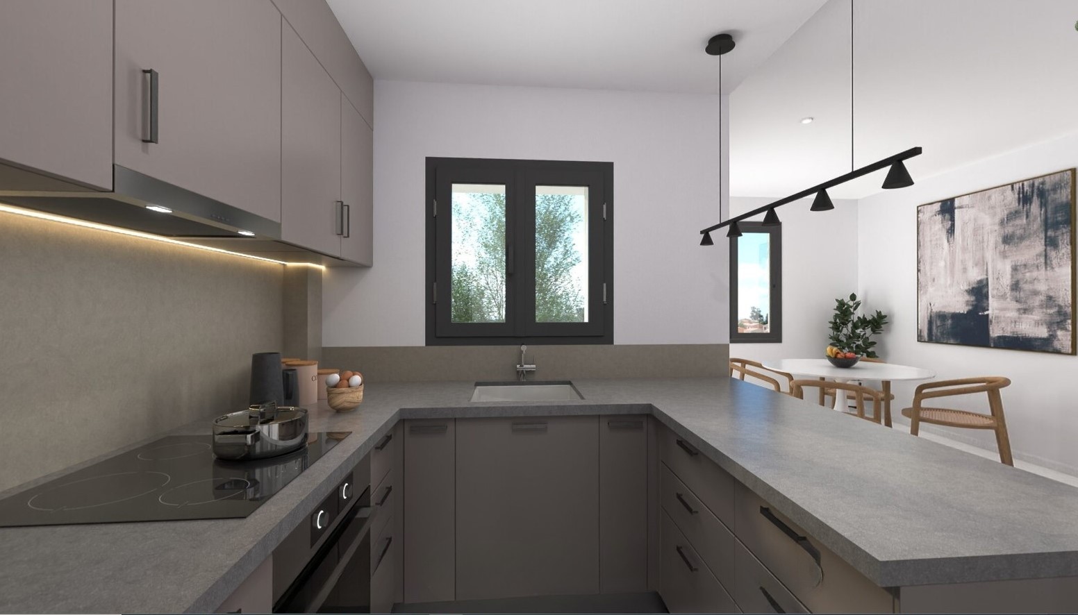 Einbauküche mit Dunstabzugshaube, Induktionskochfeld, Backofen/Mikrowelle