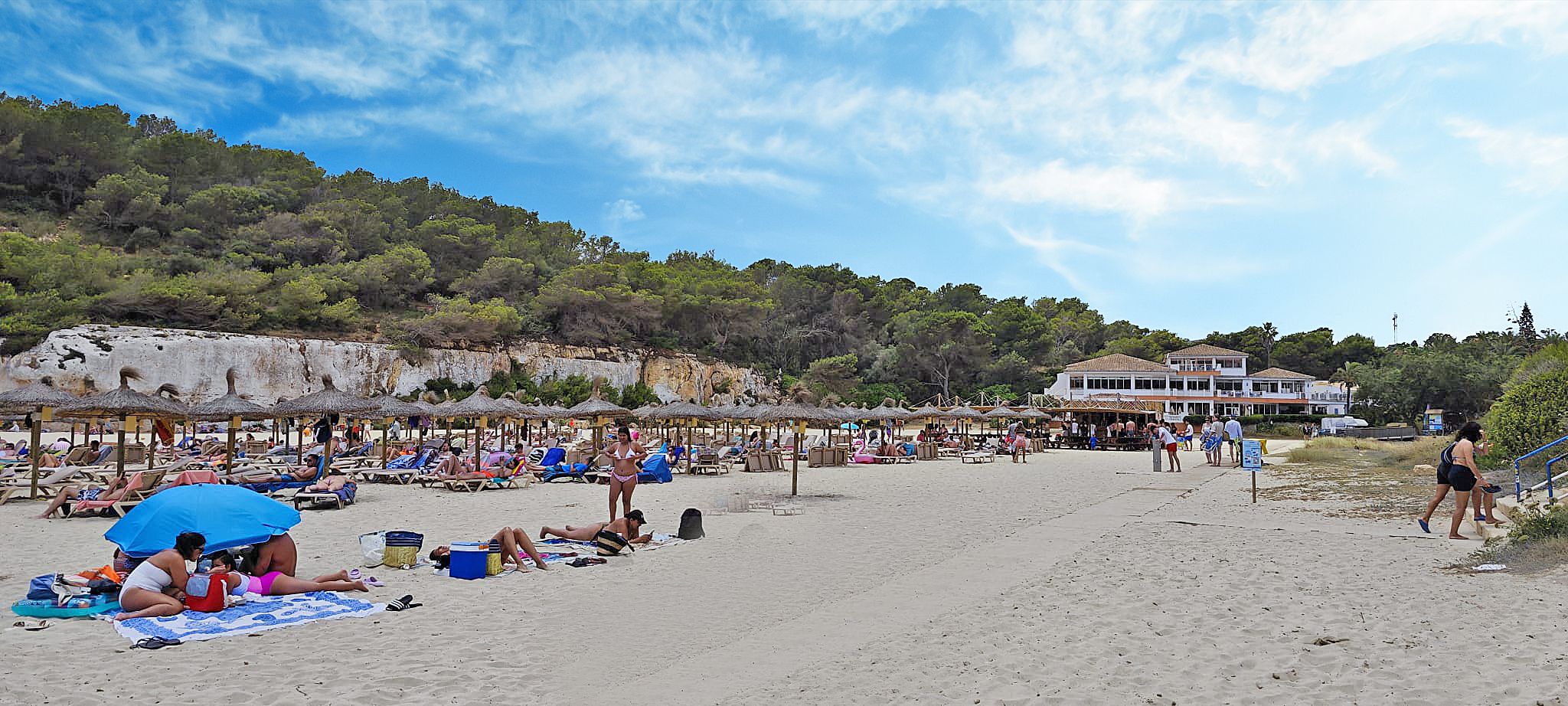 Einige Bilder zeigen die nahegelegene Sandbadebucht „Estany d`en Mas“.
