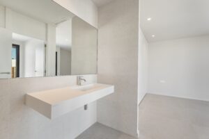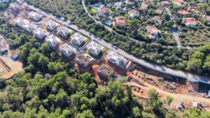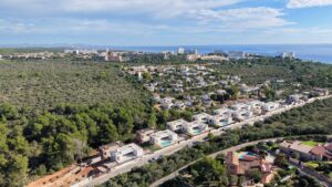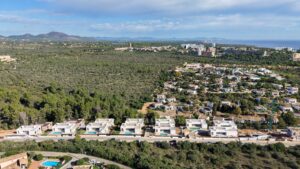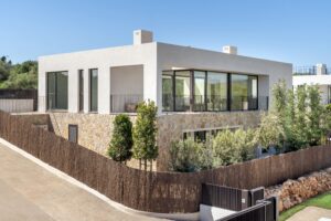 Die Villa ist Bestandteil eines Komplexes von 21 Luxusvillen die allesamt mit grossen, bodentiefen Fensterfronten ausgestattet werden und einer geradlinigen Architektur erbaut werden. Beim Bau werden natürliche Materialien von hoher Qualität unter Berücksichtigung der Nachhaltigkeit berücksichtigtt. Alle Häuser werden mit einem aerothermischen System ausgestattet, das sowohl für die Fußbodenheizung als auch für die Heizung und Klimatisierung verwendet wird.