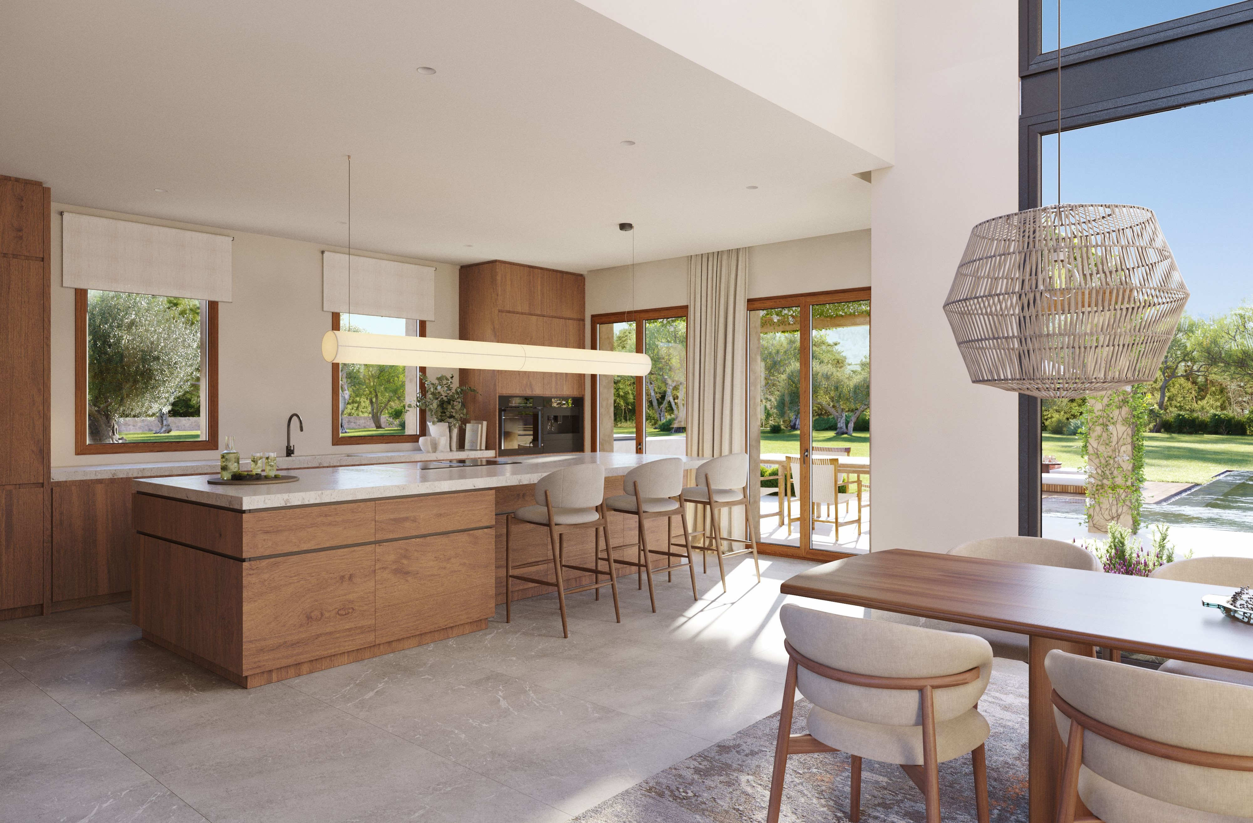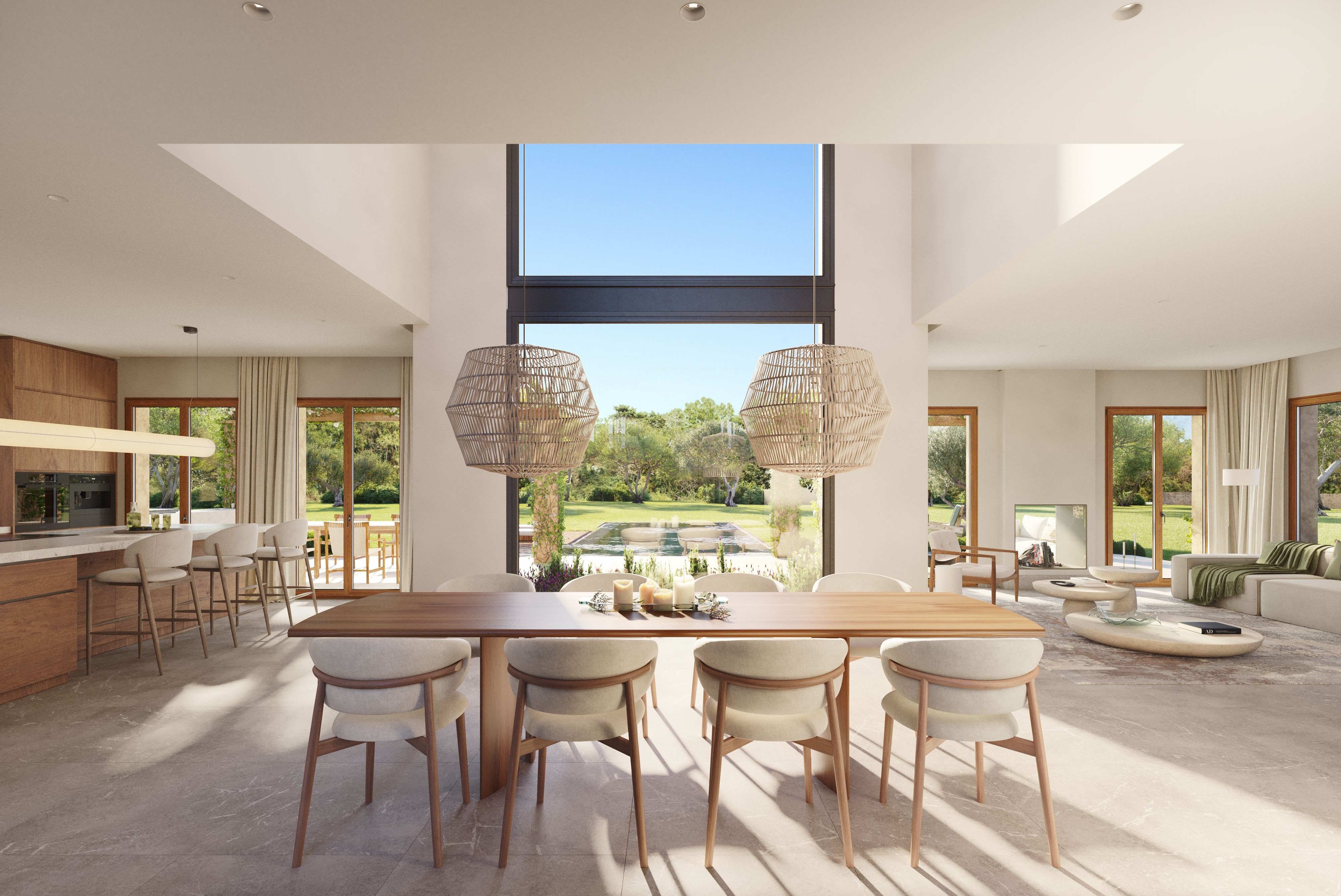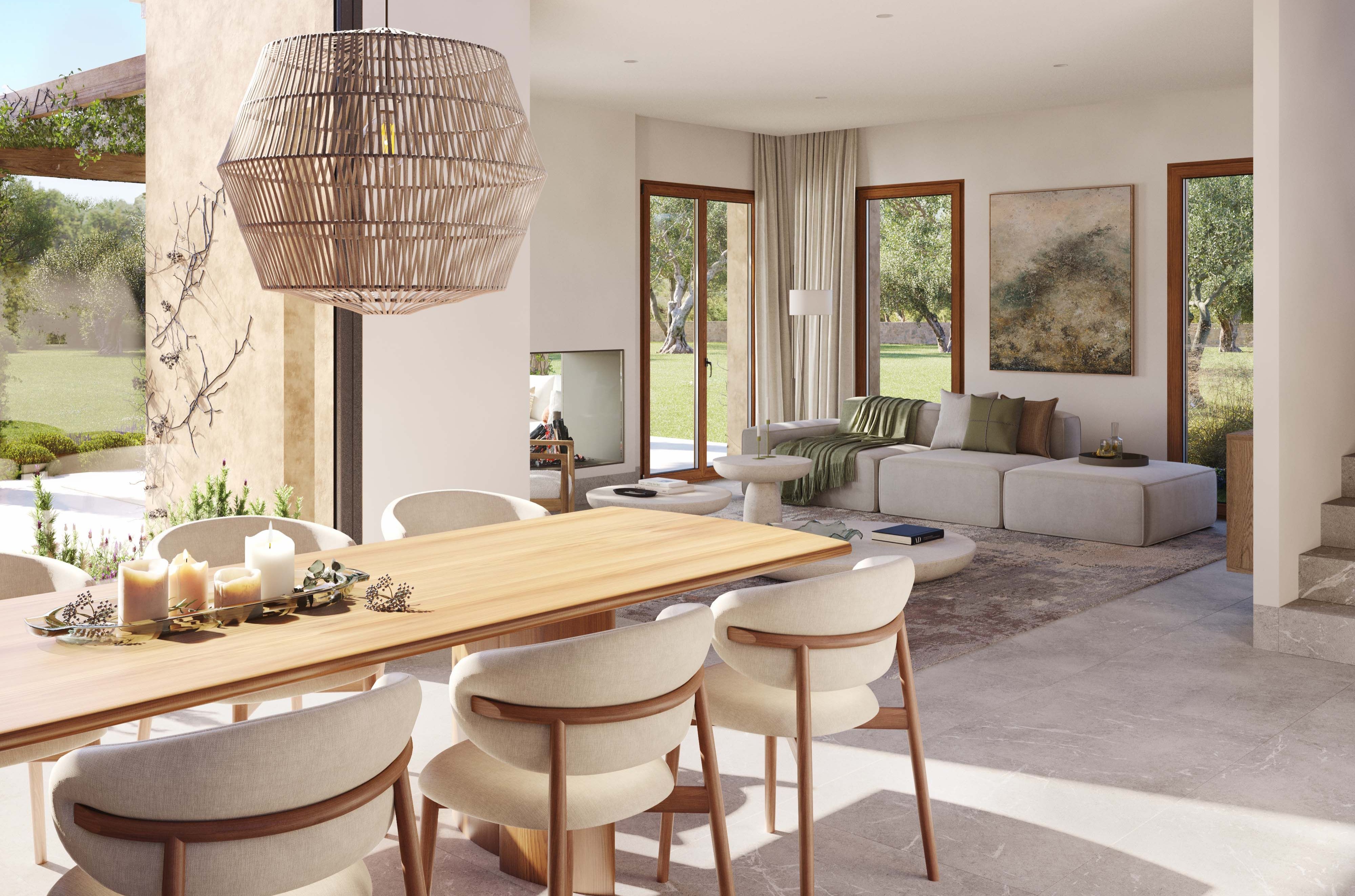Mit einer Wohnfläche von rund 374 m² überzeugt dieses Anwesen durch offene Raumkonzepte, klare Linien und hochwertige Materialien, die modernen Komfort mit traditionellem mallorquinischem Flair verbinden. Große Fensterfronten eröffnen weite Ausblicke in die Natur und schaffen ein einzigartiges Wohngefühl von Ruhe, Weite und Exklusivität.