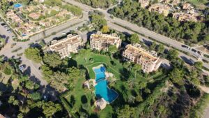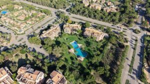 GOLF GARDENS – NOVA SANTA PONSA – Diese wundervolle Residenz im Südwesten Mallorca´s wurde im Jahre 2001 im Mediterranen Stil erbaut und bietet der Gemeinschaft insgesamt 3 Wohngebäude mit insgesamt 42 Wohneinheiten, welche allesamt über Tiefgaragen und Fahrstuhl verfügen. Die top-gepflegte Residenz offeriert zudem fantastische Gartenanlagen mit Rasenflächen, verschiedenen Palmen, Olivenbäumen und Pinien in die ein fabelhafter Gemeinschaftspool in Form einer Lagune mit Brücke eingebettet ist.