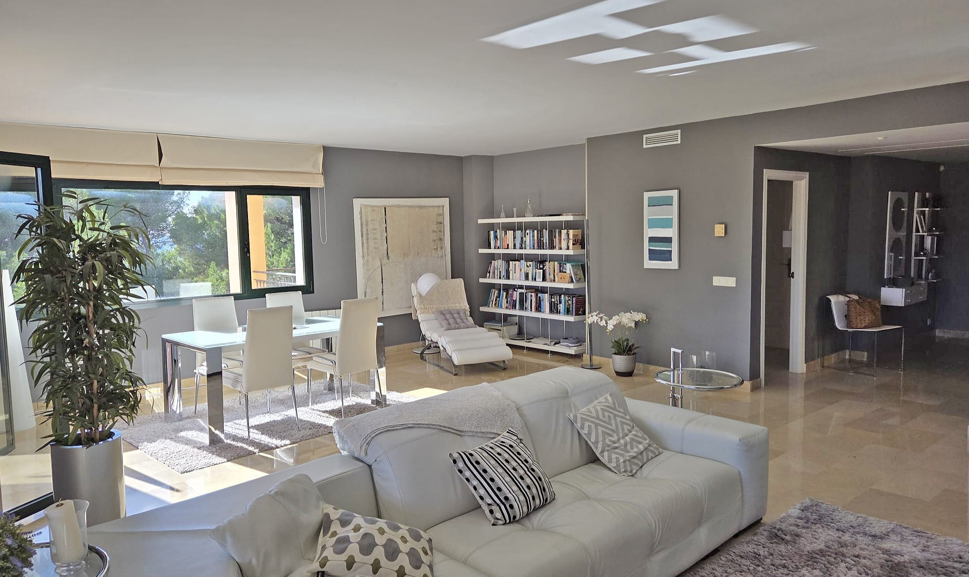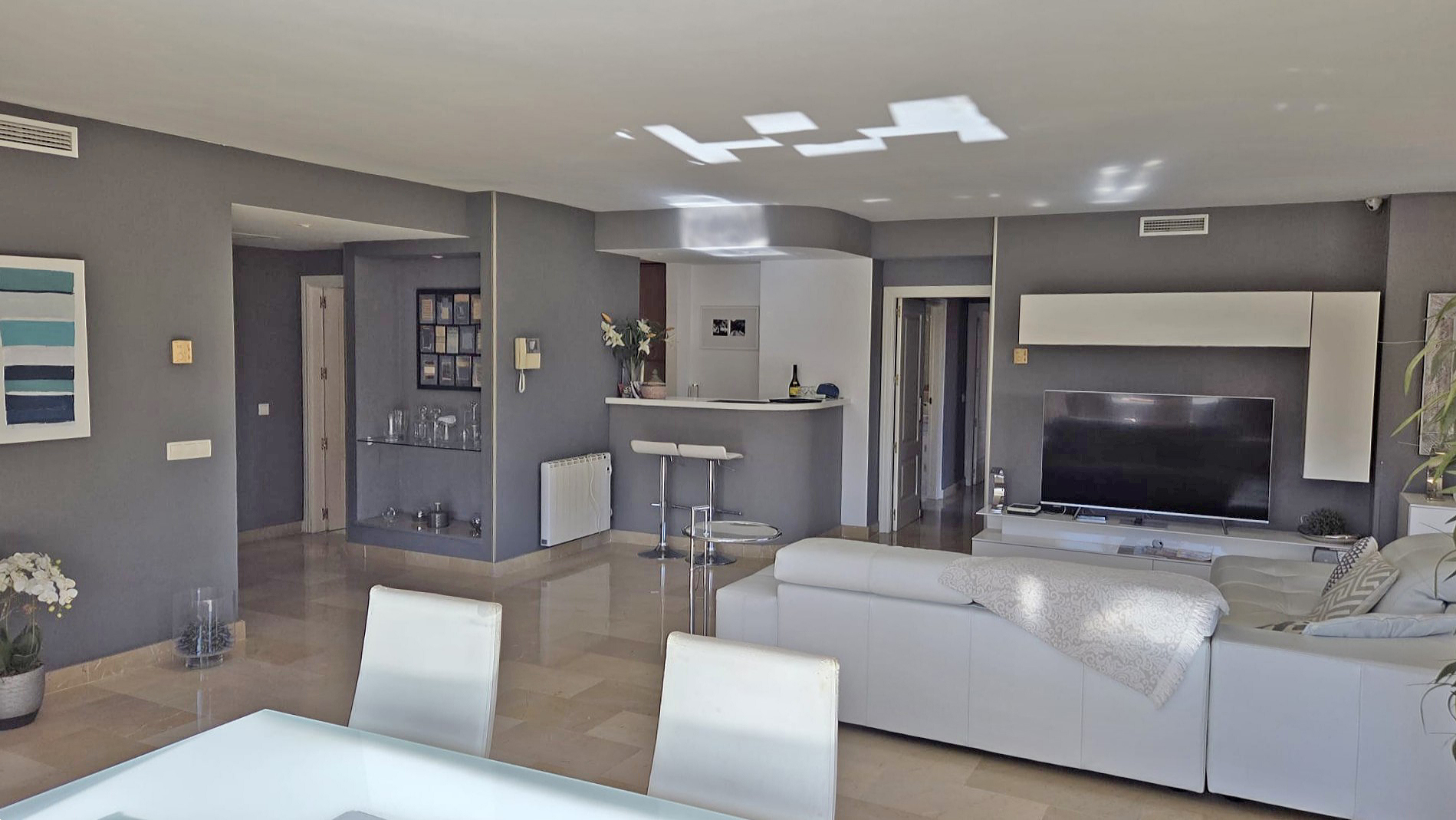 Voll ausgestattete Küche, Klimaanlage warm/kalt, elektrische Heizkörper, Hauswirtschaftsraum, Marmorfußboden, doppelt verglaste Aluminium-Fenster, Einbauschränke, Video-Eingangssystem, 57 m2 Terrasse, 10 m2 Terrasse (Hauptschlafzimmer), ca. 100 m2 Dachterrasse, Fahrstuhl, Tiefgaragenstellplatz, Abstellraum, Gemeinschaftspool.