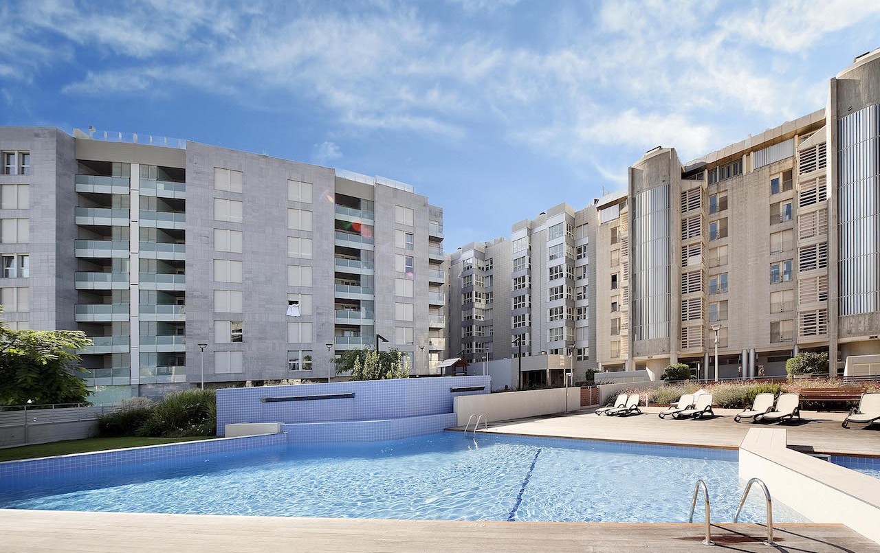 Gas-Zentralheizung, Klimaanlage warm/kalt, voll ausgestattete Küche, Hauswirtschaftsraum, elektrische Rollläden, Einbauschränke, Fliesenfußboden, doppelt verglaste Fenster, Terrasse, Fahrstuhl, Tiefgaragenstellplatz, Gemeinschaftgs-Swimming-Pool, Paddle-Court, Spielplatz, 24 Std.-Sicherheitsdienst.