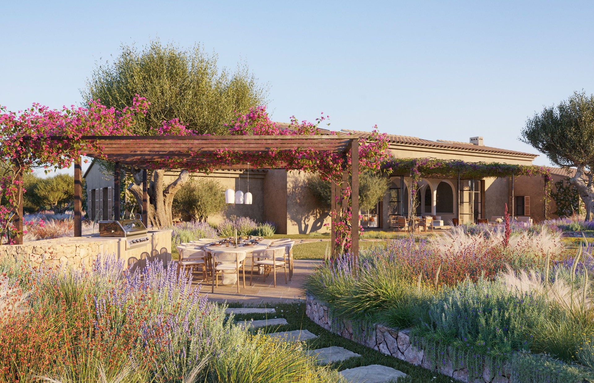 Edle Materialien, klare Linien und mediterrane Elemente schaffen eine stilvolle Atmosphäre, die Luxus, Privatsphäre und modernes Inselleben perfekt miteinander verbindet.