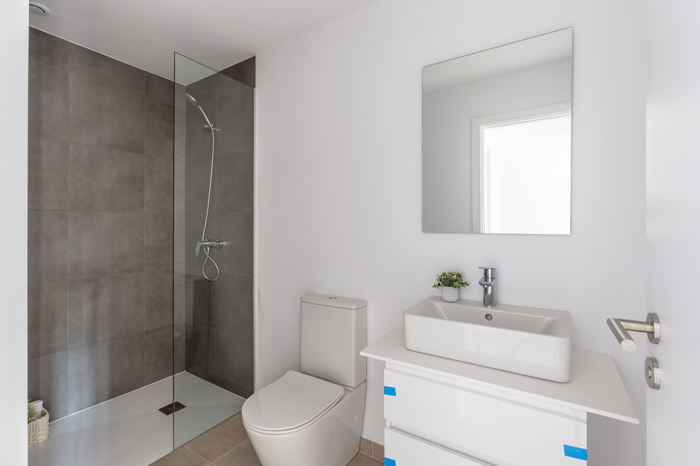 Diese neue Doppelhaushälfte in Cala Romantica im Osten von Mallorca auf einem Grundstück von 220 m2 verfügt über eine bebaute Fläche von 119 m2 auf zwei Wohnebenen, mit einer Wohnfläche von 75 m2. Im unteren Hauptwohnbereich stehen das Wohn-/Esszimmer, eine voll ausgestattete Küche, ein Hauswirtschaftsbereich, ein Schlafzimmer und ein Duschbad zur Verfügung. Im Obergeschoss bietet das Haus das Hauptschlafzimmer mit Badezimmer en Suite und Zugang zu zwei privaten Terrasse. Vom Wohnzimmer aus gelangt man zu einer ca. 23 m2 überdachten Terrasse. Der private Gartenanteil beträgt ca. 125 m2. Ein privater Pkw-Stellplatz rundet das Angebot ab.