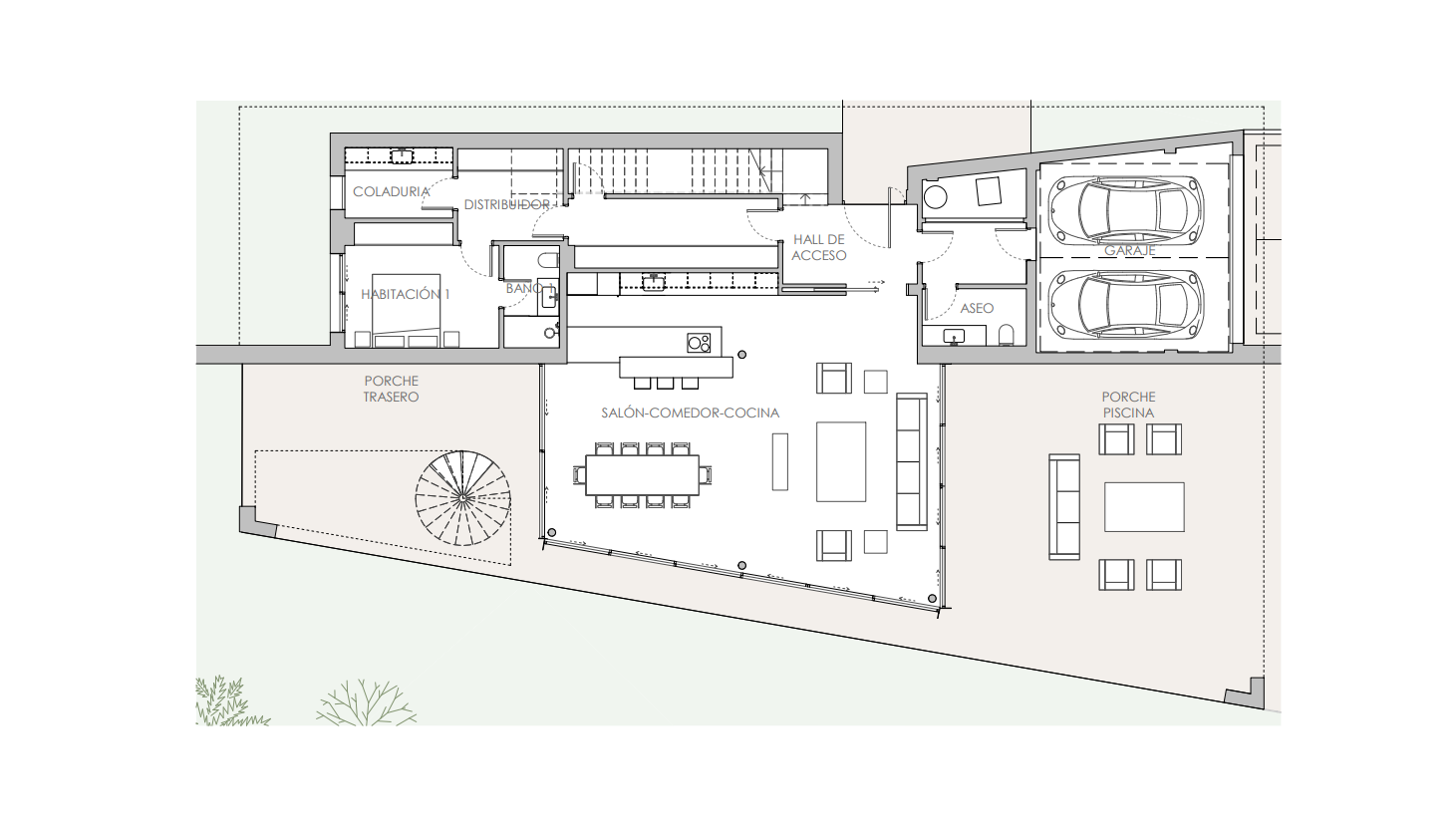 Dies fantastische Neubauvilla in Sol de Mallorca im Südwesten von Mallorca auf einem Grundstück von 1.202 m2 verfügt über eine bebaute Fläche von 358 m2 über zwei Wohnebenen und teilt sich wie folgt auf: