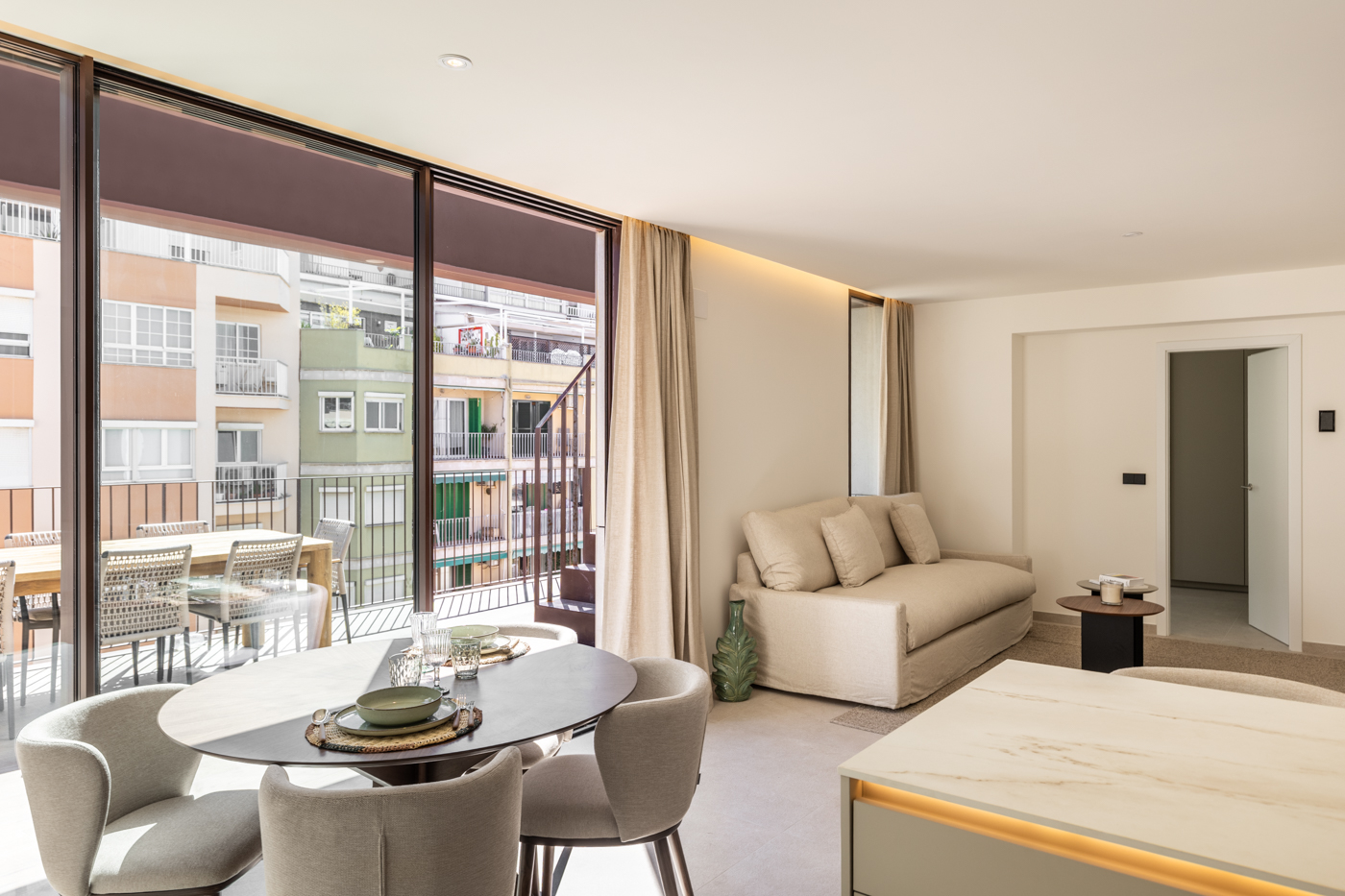 Dieses außergewöhnliche Luxus-Residenz umfasst 25 stilvolle Apartments und Penthäuser. Sie liegt ideal zwischen den begehrten Vierteln Santa Catalina und Son Espanyolet. Vom eleganten Eingangsbereich gelangen Sie per Aufzug bequem zu Ihrer Wohnung oder in die Tiefgarage, wo auch Fahrradstellplätze und Abstellräume zur Verfügung stehen. Die modernen Einheiten mit 1 bis 3 Schlafzimmern und 1 bis 2 Bädern bieten Wohnflächen zwischen 51 m² und 130 m². Großzügige Fensterfronten sorgen für lichtdurchflutete Räume.