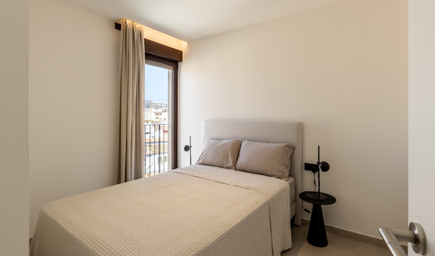 Dieses exklusive Luxus-Penthaus im 5. Stock einer neu erbauten Luxus-Residenz in Palma de Mallorca bietet auf bei einer Wohnfläche von 79 m² zuzüglich einer 25 m2 Terrasse und einer 82 m2 Dachterrasse modernes Design und höchste Wohnqualität. Das Herzstück ist der offene Wohn-Essbereich mit integrierter Designerküche, der durch großzügige Fensterfronten und den direkten Zugang zur privaten Terrasse besticht. Der private Bereich umfasst zwei helle Schlafzimmer mit maßgefertigten Einbauschränken sowie ein eleganten En-Suite-Badezimmern, ausgestattet mit hochwertigen Materialien. Ein Zuhause, das mediterrane Ästhetik perfekt mit modernster Smart-Home-Technologie vereint. Zwei Tiefgaragenstellplätze und zwei Abstellräume runden das Angebot ab.