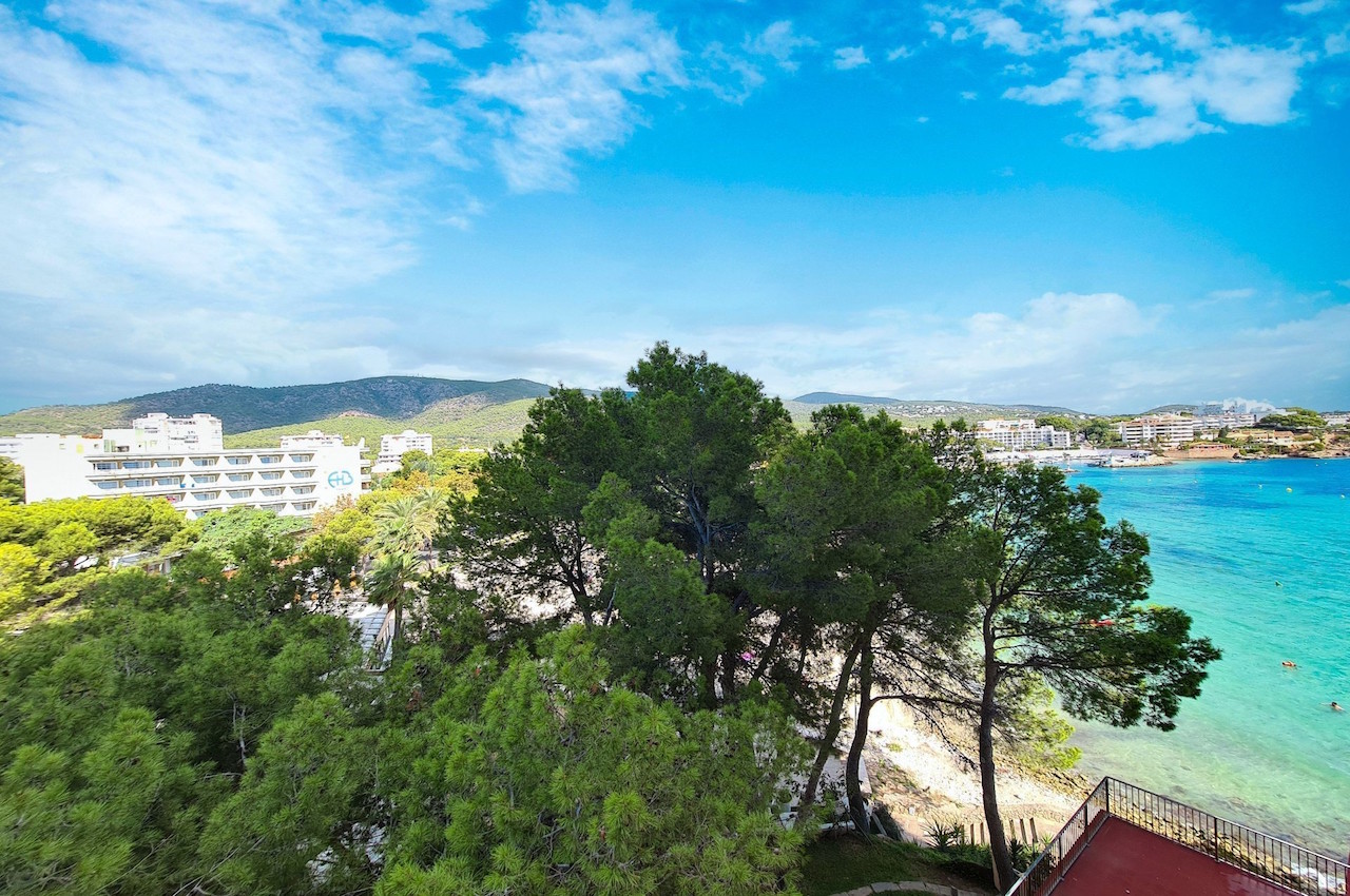 Diese geräumige Wohnung im 4. Stock in einem gepflegten Wohngebäude in Palmanova im Südwesten von Mallorca bietet eine Wohnfläche von 176 m2 zuzüglich ca. 50 m2 Terrassenflächen mit herrlichem Meerblick. Derzeit verfügt die Immobilie über vier Schlafzimmer, zwei Badezimmer, eine geräumige und voll ausgestattete Einbauküche und einen hellen und großzügigen Wohnbereich. Ursprünglich bestand sie aus zwei separaten 100 m² großen Wohnungen, was bedeutet, dass sie ohne Genehmigung leicht wieder geteilt werden kann. Diese Eigenschaft bietet die Flexibilität, in einem Teil zu wohnen und den anderen zu vermieten oder Gäste zu beherbergen. Zwei Terrassen mit je 25 m² umgeben die Wohnung und ermöglichen es Ihnen, den ganzen Tag über sowohl Sonne als auch Schatten zu genießen. Darüber hinaus verfügt die Immobilie über zwei Tiefgaragenstellplätze und zwei Abstellräume.